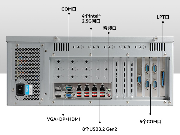 乐鱼工控DT-610X-WR680MA是一款4U机架式工控机,支持酷睿12/13代i3/i5/i7/i9处理器和英伟达40/30系显卡。内存大,有4*DDR5,高达128G。有4个网口,6个COM口,13个USB接口,7个PCIe插槽,扩展性强,支持定制。